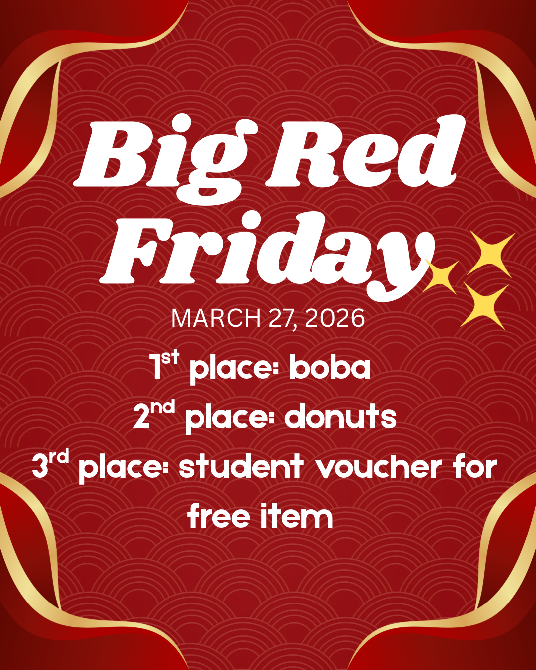Get ready lions! FRIDAY the 27th is a BIG RED FRIDAY! Come decked out in your biggest red outfit. The 2nd period classes with the best red will receive: